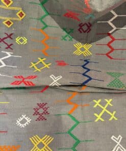 Tapis Kilim Berbère Fait Main – Gris avec Motifs Multicolores (1,5 x 2,8 m)